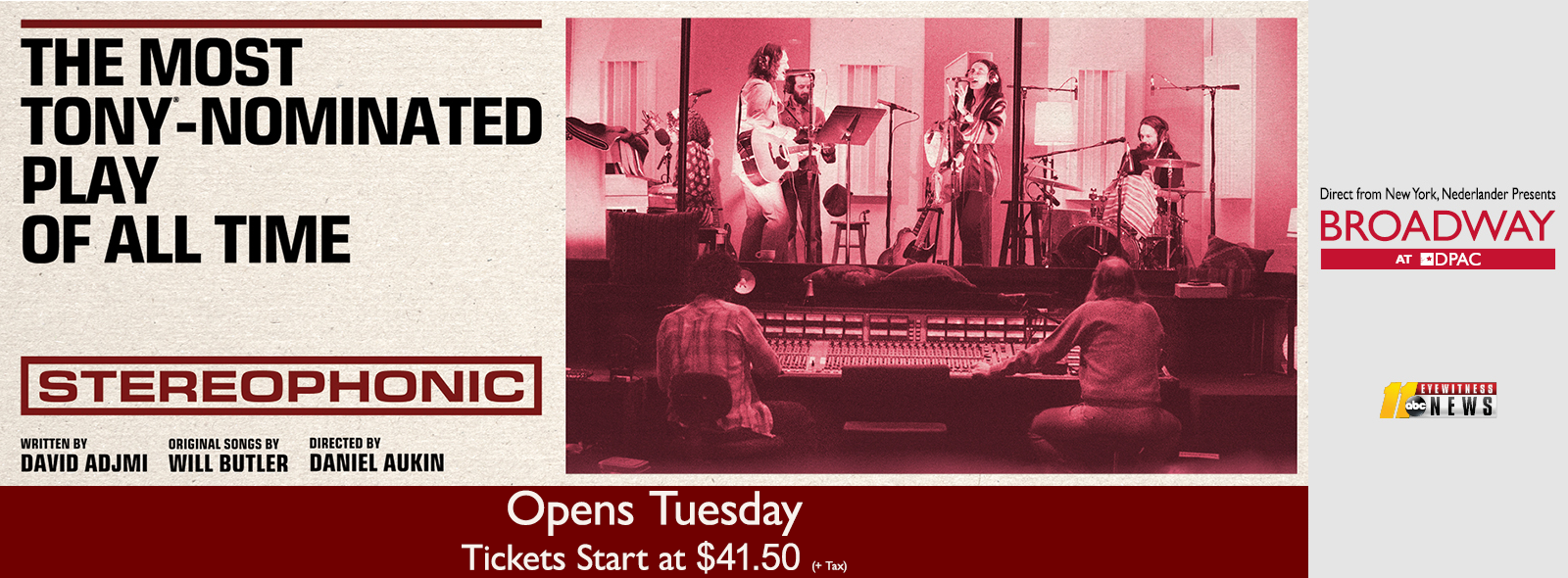 DPAC has reserved select seating, exclusively for residents of Durham, military, and students for most Broadway shows and select special events. DPAC for ALL tickets to Stereophonic are sold out, however, please visit the DPAC For ALL webpage for upcoming events that offer DPAC For ALL tickets.