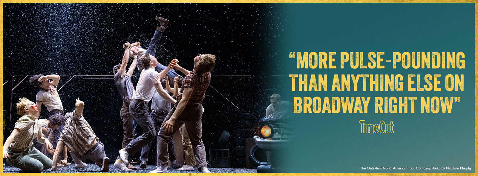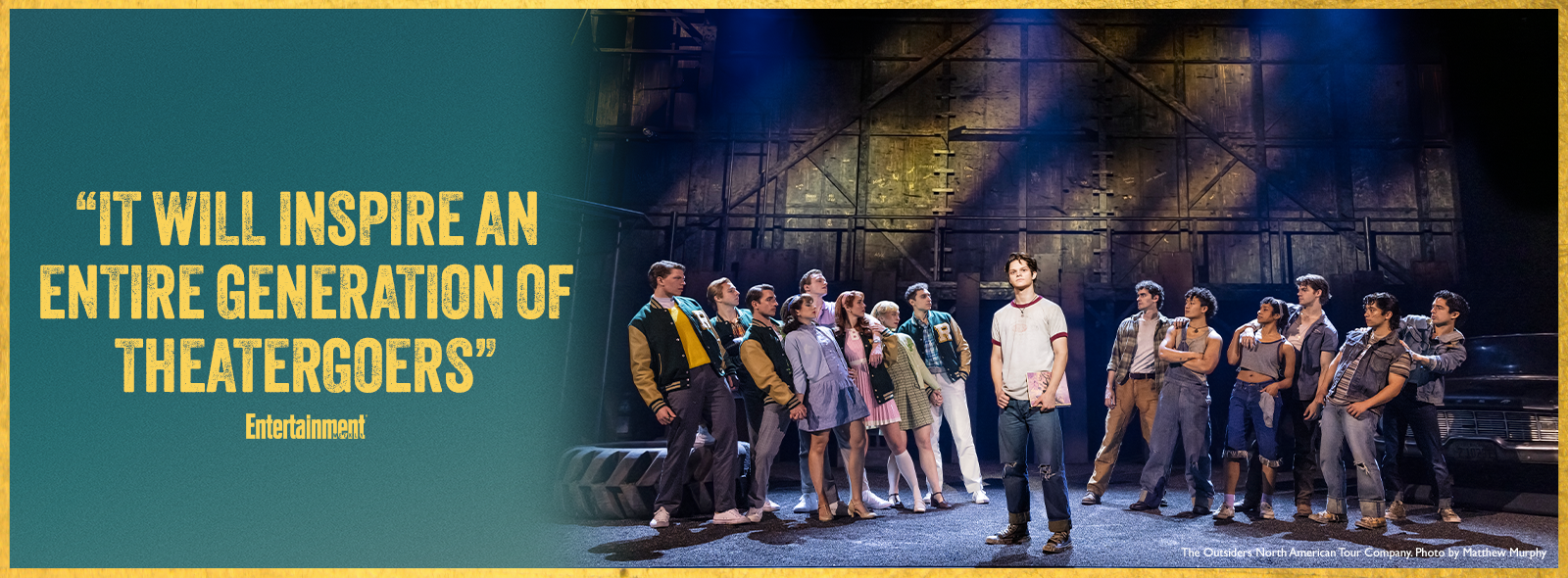 Adapted from S.E. HINTON’s seminal novel and Francis Ford Coppola’s iconic film, this thrilling new musical features a book by Adam Rapp with Justin Levine, music and lyrics by Jamestown Revival (Jonathan Clay & Zach Chance) and Justin Levine, music supervision, orchestration, and arrangements by Justin Levine, choreography by Rick Kuperman & Jeff Kuperman, and direction by Tony Award® winner Danya Taymor. Entertainment Weekly says, "It has the power to inspire an entire generation."