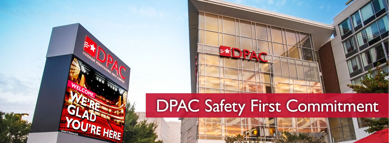 At DPAC, your safety and peace of mind remain our highest priority. Our comprehensive Safety First Commitment is designed to make events safer for guests, staff, vendors, and visiting shows, while maintaining the legendary customer experience for which DPAC is best known.